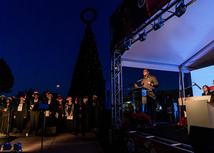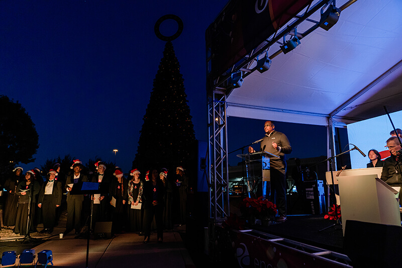The event also featured live music by Thomas Cokinos, the Westside High School choir and the Carlos Lopez Orchestra and a Candy Cane Lane Nutcracker Market sponsored by District employer Kiewit. The 50-foot tree is powered by a 100% renewable electricity plan from Shell Energy.