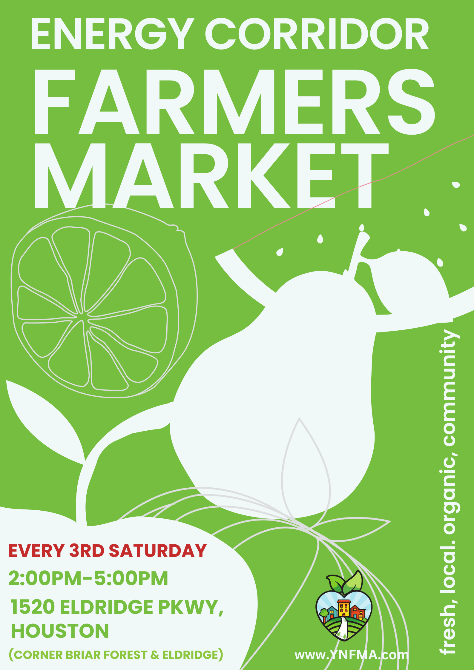 EVERY 3rd SATURDAY – Discover new pantry finds and beyond. Featuring: farm-fresh produce, grass-fed meats, farm-fresh eggs, kid activities, local honey, artisan items, flavored butters, Cajun and Indian cuisine, micro-greens and so much more at Your Neighborhood Farmer’s Market in the Energy Corridor.